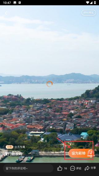 4、在彩鈴詳情頁,點(diǎn)擊設(shè)為彩鈴按鈕,完成該視頻彩鈴的設(shè)置操作。