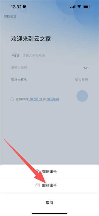 2、在登錄方式選擇菜單中,點(diǎn)擊郵箱賬號(hào),進(jìn)入郵箱登錄頁(yè)面。