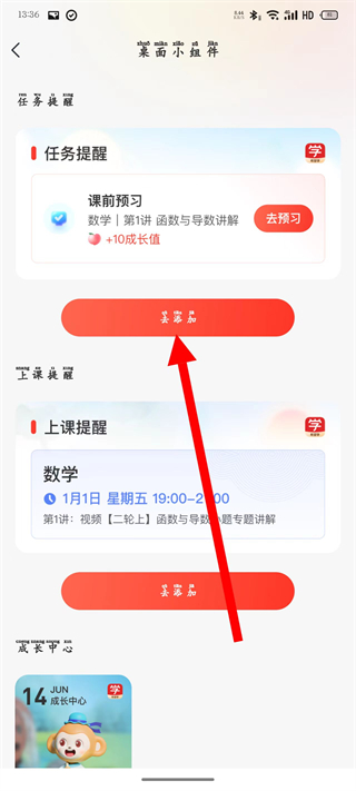 4、在桌面小部件頁面,點擊去添加按鈕,查看添加方法。