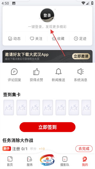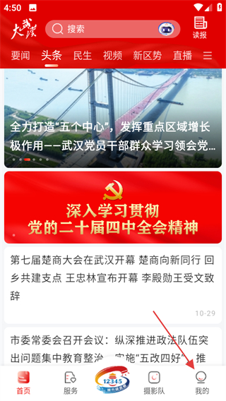 1、打開(kāi)大武漢,點(diǎn)擊頁(yè)面右下角我的,可進(jìn)入個(gè)人中心頁(yè)面。