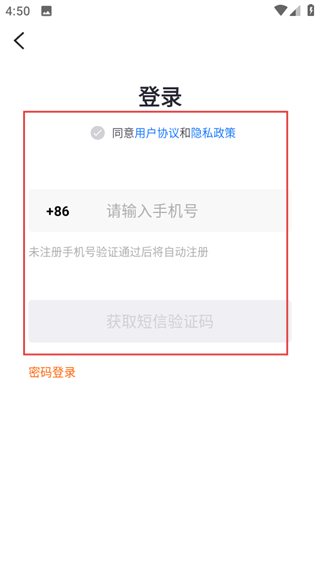 3、在登錄頁(yè)面,輸入信息后,點(diǎn)擊獲取短信驗(yàn)證碼進(jìn)行下一步。
