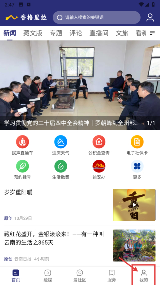 1、打開資訊服務(wù)類應(yīng)用,點(diǎn)擊底部我的選項(xiàng),進(jìn)入個(gè)人中心頁面。