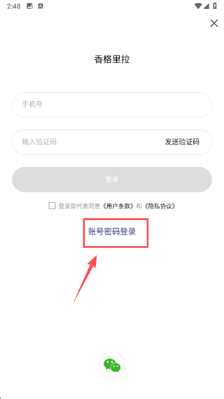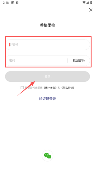 4、在該頁面輸入手機(jī)號(hào)和密碼,勾選同意用戶條款和隱私協(xié)議后,點(diǎn)擊登錄按鈕,完成賬號(hào)登錄操作。