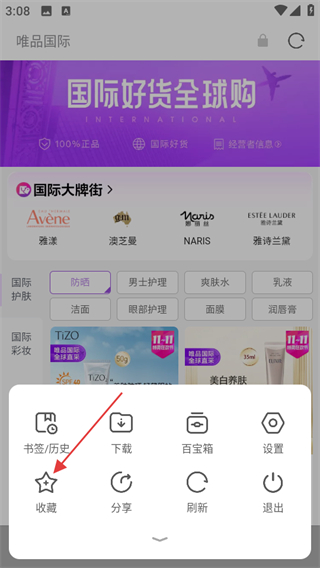2、在唯品國(guó)際頁(yè)面,點(diǎn)擊右下角功能按鈕可展開功能菜單。