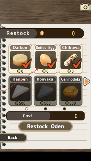 4、點擊菜品欄,勾選需要的菜品,放入關(guān)東煮鍋中。