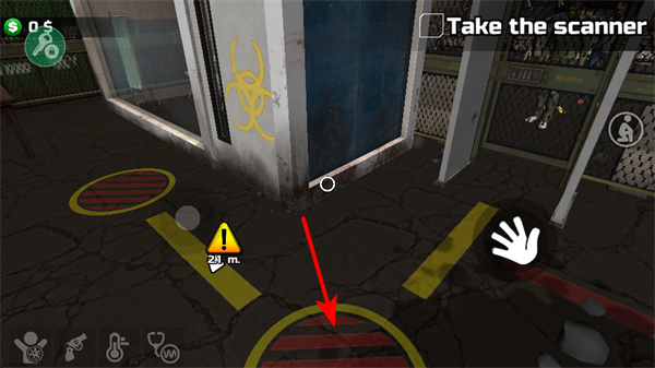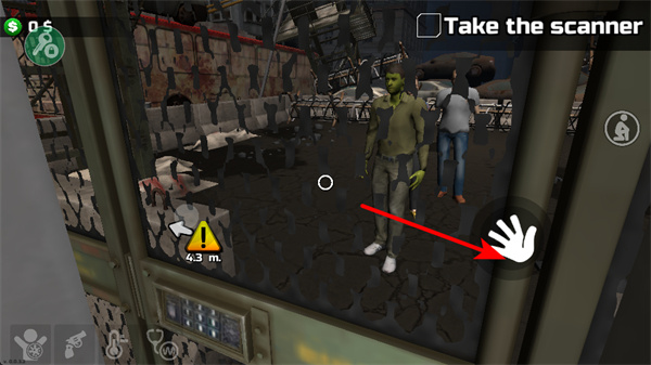 3、遇到僵尸等敵人時(shí),點(diǎn)擊右側(cè)的手掌按鍵可進(jìn)行互動操作,如觀察、躲避或采取應(yīng)對措施,保障自身安全。