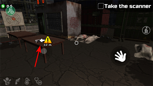 4、場景中的物品提示區(qū)域,如帶有武器標(biāo)識的桌子,靠近后可獲取武器資源,提升戰(zhàn)斗能力,完成消滅僵尸任務(wù)。