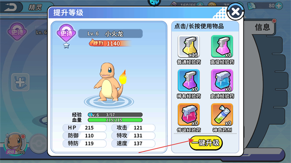 2、每擊敗一只野生精靈都會獲得少量經(jīng)驗,當(dāng)經(jīng)驗條滿之后就可以升級了。