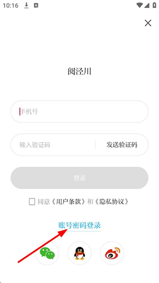 3、在登錄選擇頁面,點擊賬號密碼登錄,進入賬號密碼登錄頁面。