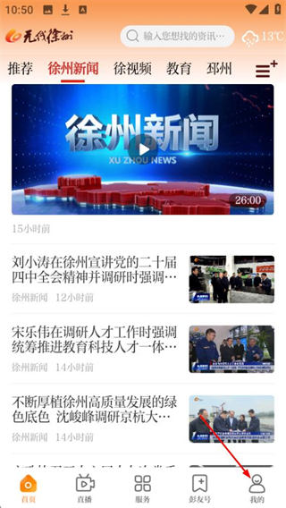 1、打開無線徐州,點擊頁面右下角我的,可進入個人中心頁面。