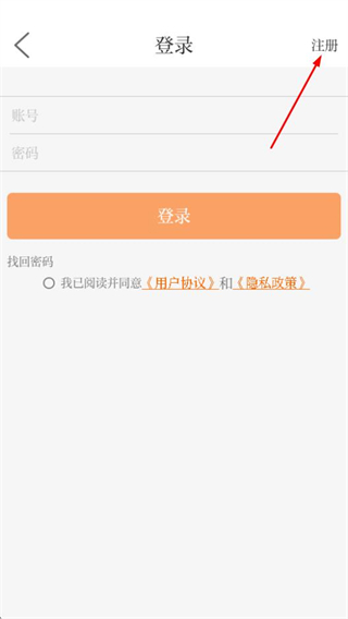 3、在登錄頁面,若還沒有賬號,點擊注冊可進入注冊頁面。
