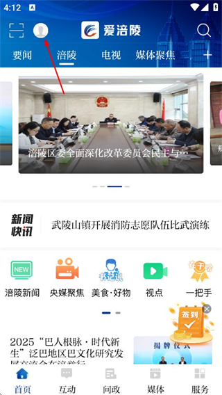 1、打開(kāi)愛(ài)涪陵,點(diǎn)擊頁(yè)面左上角的個(gè)人圖標(biāo),可進(jìn)入個(gè)人中心頁(yè)面。