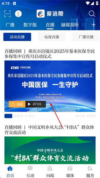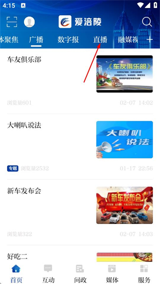 1、打開愛涪陵,在頁面點擊直播,可進入直播分類頁面。