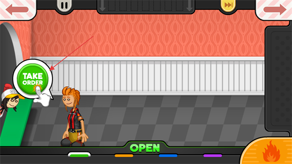 1、進(jìn)入游戲開始營業(yè),點(diǎn)擊綠色按鈕開始記錄排隊(duì)顧客需求生成菜單。