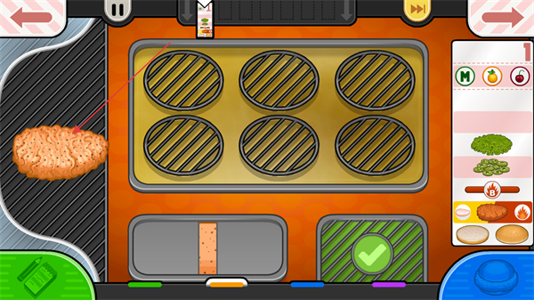 2、根據(jù)菜單提供食材,通過煎制肉餅等操作,制作漢堡。