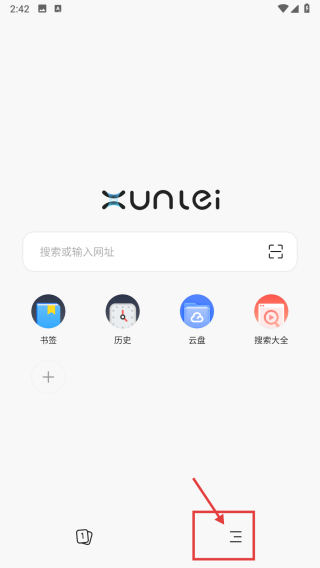 1、打開迅雷APP,點(diǎn)擊右下角菜單圖標(biāo),展開功能菜單。