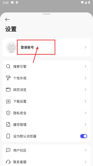3、在設(shè)置頁面,點(diǎn)擊登錄賬號(hào)選項(xiàng),進(jìn)入登錄方式選擇頁面。