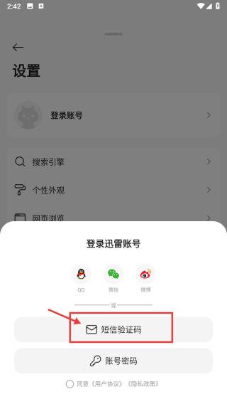 4、在登錄方式選擇頁面,點(diǎn)擊短信驗(yàn)證碼選項(xiàng)完成賬號(hào)登錄操作。
