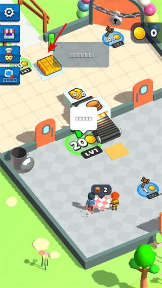 4、關(guān)注箭頭提示的新建筑或新區(qū)域,解鎖后可豐富店鋪的經(jīng)營項目,如解鎖面包區(qū)域可完善漢堡的制作原料供應,店鋪高效運營。