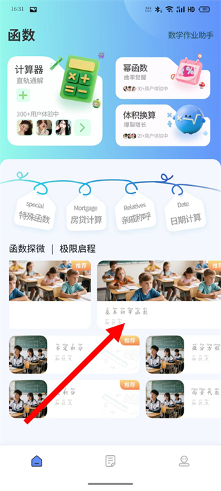 1、打開數學畫圖,在首頁點擊基本初等函數課程,進入對應頁面。