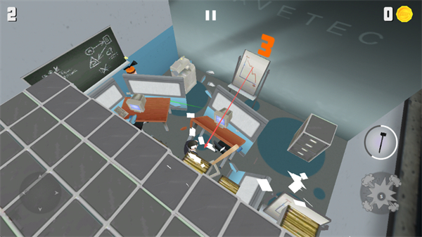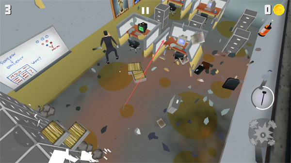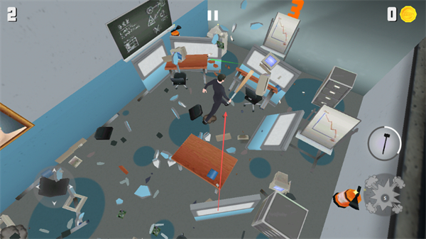 1、操控角色在辦公室內(nèi)移動(dòng),破壞辦公桌椅、電腦等物品,制造混亂。