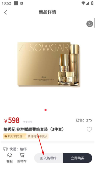 3、在商品詳情頁面,點擊加入購物車可將商品加入購物車。