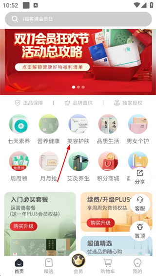 1、打開i??蜐M,點擊美容護膚,可進入美容護膚商品分類頁面。