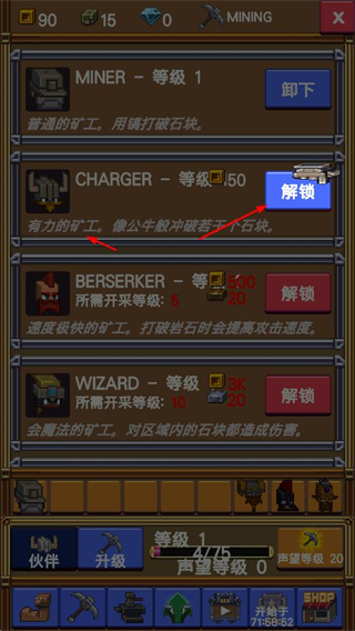 4、解鎖不同礦工,利用其特性提升挖礦效率,拓展挖礦能力。