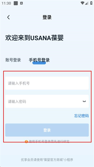 3、在該界面,輸入手機(jī)號(hào)和密碼后點(diǎn)擊登錄,即可完成賬號(hào)登錄。