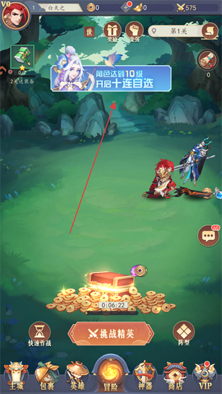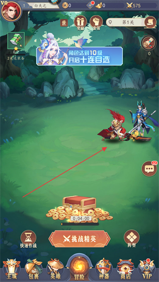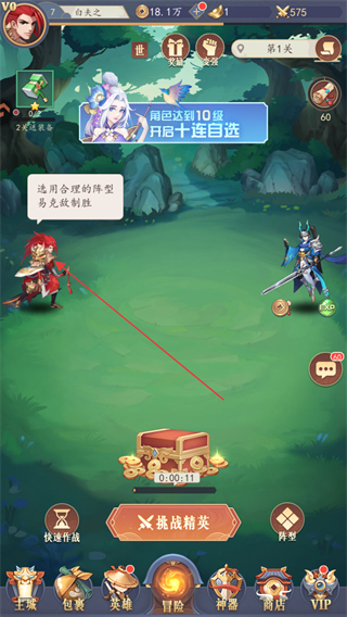 4、根據(jù)提示選用合理的陣型,調(diào)整英雄站位,以便克制敵方,更輕松取得勝利,同時可通過快速升級、培養(yǎng)英雄等方式不斷提升實力,推進游戲進程。
