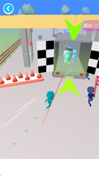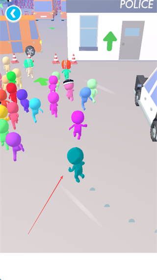 1、操控角色在人群中奔跑,避開障礙物,朝著帶有綠色箭頭的目標方向前進。