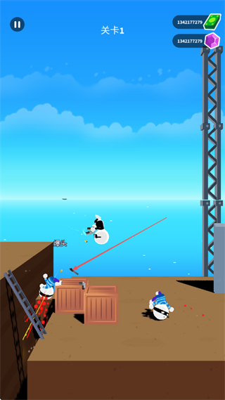 1、在關(guān)卡1中,操控神槍手移動(dòng)至合適位置,瞄準(zhǔn)敵方目標(biāo)。