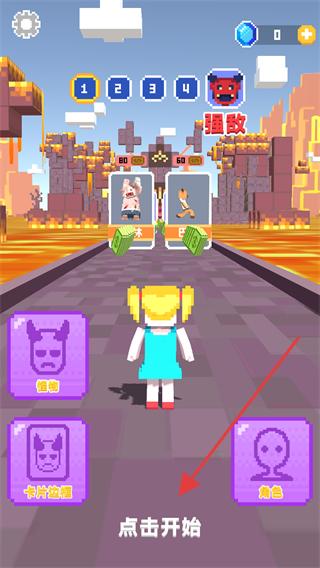 1、游戲首頁可以查看怪物,修改卡牌邊框和角色樣式,點(diǎn)擊屏幕中間空白區(qū)域開始關(guān)卡挑戰(zhàn)。