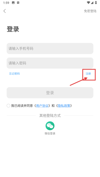 3、在登錄注冊選擇頁面,點擊注冊選項,進入賬號注冊信息填寫頁面。