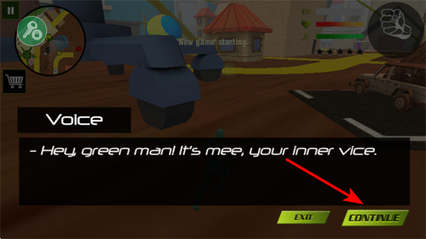 2、遇到劇情提示界面時(shí),點(diǎn)擊CONTINUE按鈕推進(jìn)劇情,這是解鎖游戲內(nèi)容、了解故事背景的關(guān)鍵操作。
