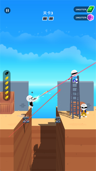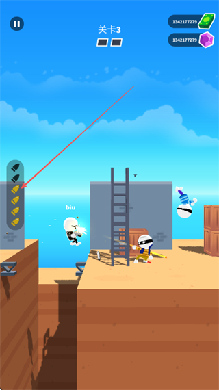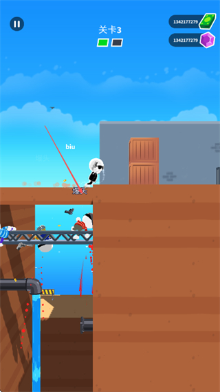 2、瞄準(zhǔn)敵方目標(biāo),發(fā)射子彈,利用子彈彈射消滅多個(gè)敵人。