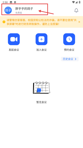 1、打開會議類APP首頁,點擊左上角頭像區(qū)域,進入個人中心頁面。