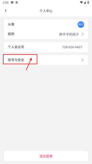 3、在個人中心頁面,點擊賬號與安全選項,進入賬號與安全頁面。