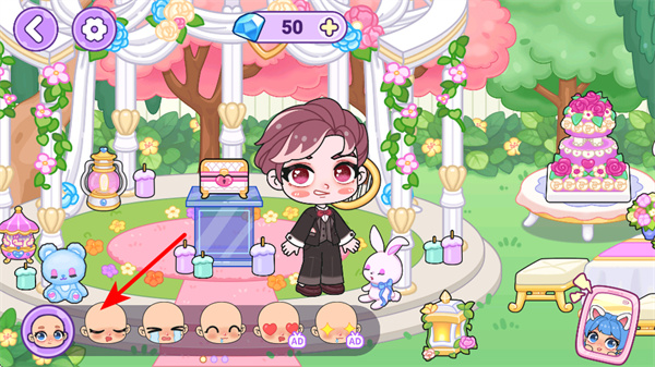 2、選擇不同的臉部表情道具,為角色更換表情,表情更換可豐富角色形象,提升場景的趣味性和個性化程度。