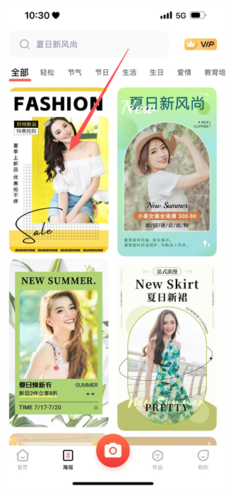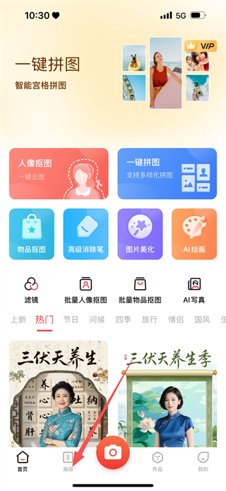 1、在APP首頁(yè),點(diǎn)擊底部海報(bào),進(jìn)入海報(bào)模板頁(yè)面。