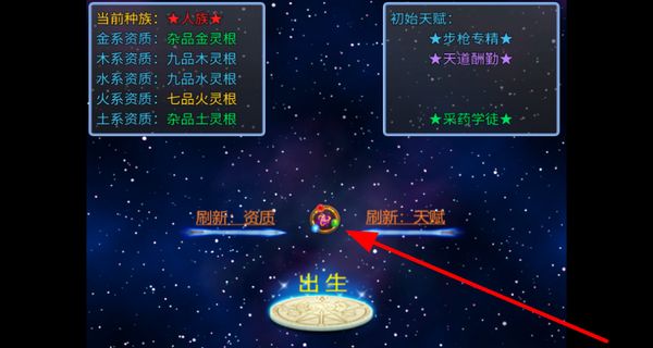 1、刷新資質(zhì)和天賦,挑選契合的種族與初始天賦,點擊出生,正式開啟充滿未知的修仙之旅。