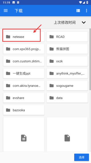 4、在下載文件夾列表頁面,點擊netease文件夾,即可進(jìn)入該文件夾查看其中的文件內(nèi)容。