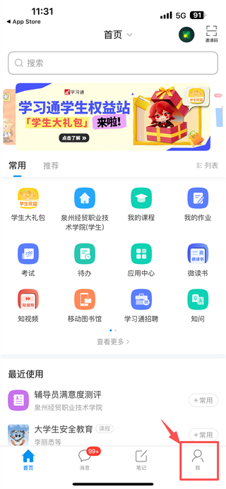 1、打開(kāi)學(xué)習(xí)類APP首頁(yè),點(diǎn)擊底部我選項(xiàng),進(jìn)入個(gè)人中心頁(yè)面。