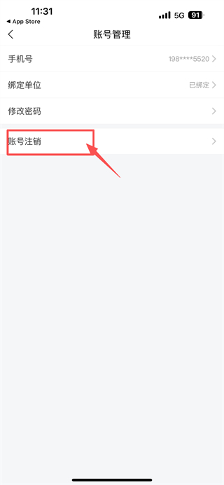 4、在賬號(hào)管理頁(yè)面,點(diǎn)擊賬號(hào)注銷選項(xiàng),即可發(fā)起賬號(hào)注銷操作。