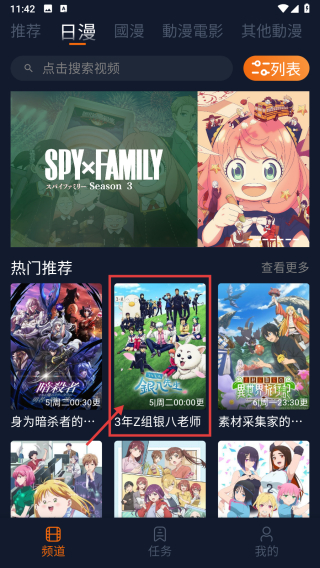 2、在日漫頁面,點(diǎn)擊3年Z組銀八老師動(dòng)漫條目,進(jìn)入動(dòng)漫詳情頁面。