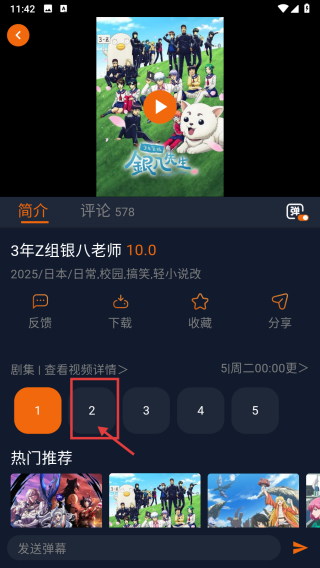 3、在動(dòng)漫詳情頁面,點(diǎn)擊2集選項(xiàng),進(jìn)入播放頁面。