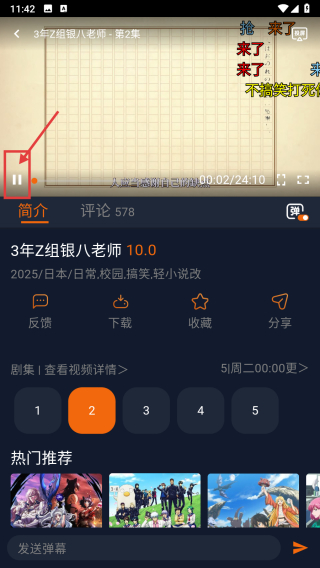 4、在播放頁面,即可開始觀看該集內(nèi)容,可通過左側(cè)暫停按鈕控制播放狀態(tài)。