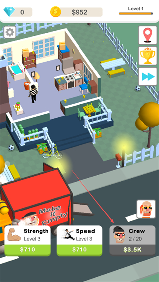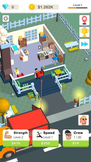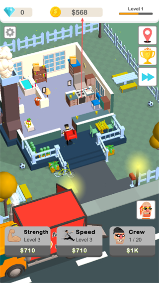 1、操控角色在房屋內(nèi)搬運家具,通過搬運積累金幣。
