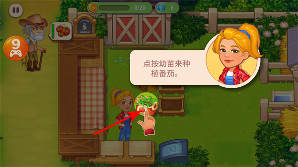 2、點按幼苗種植番茄,種植操作是開展農場經營的基礎步驟,通過種植可培育作物,收獲和交易提供資源。