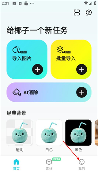1、在椰子設計首頁,點擊右下角我的選項,進入個人頁面。